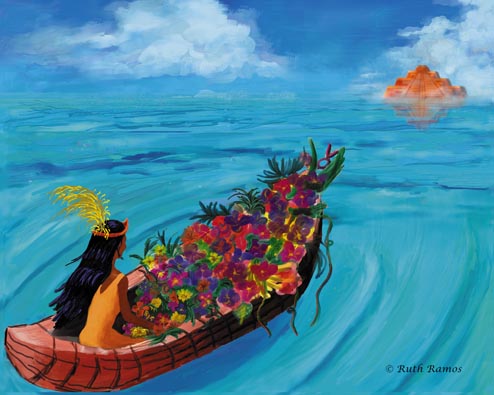 This beautiful princess is floating toward Tenochtitlan, the capital of the Aztec Empire.