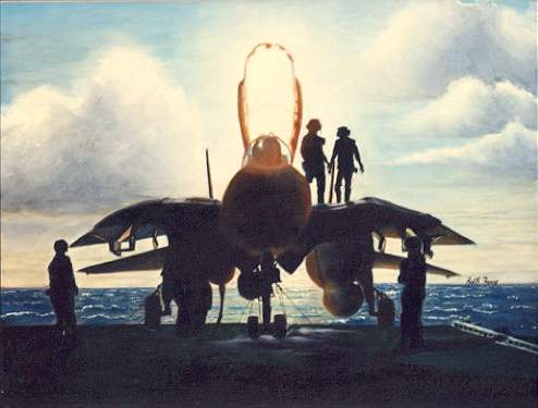 "Steel Wings," 24x18, oil on canvas, not for sale © Ruth Ramos My interpretation of a famed carrier shot. The aircraft is an F14.